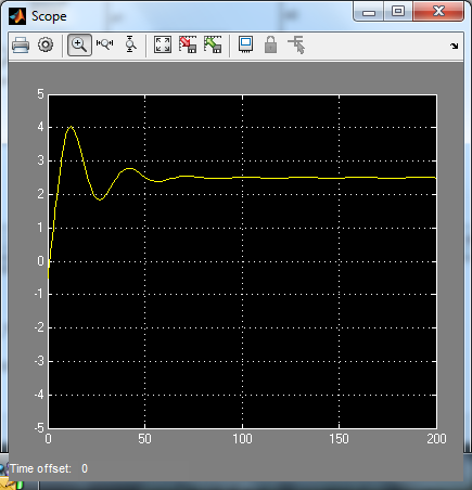 % errore intrinseco di inseguimento a r(t) = 2 NULLO perché il sistema è di % tipo 1 % effetto del disturbo d1 costante sull'uscita pari a d1/(Kc/Kr) perché ci sono poli % nell'origine solo nel blocco a valle del disturbo % effetto del disturbo d2 = alfa_d2*t (rampa) sull'uscita pari ad alfa_d2/KGa = alfa_d2/(Kc*Kf/Kr) % perché il sistema è di tipo 1 errore_r=dcgain(s*We*2/s) effetto_d1=dcgain(s*Wd1*0.1/s) effetto_d2=dcgain(s*Wd2*0.01/s^2) errore_tot=errore_r-(effetto_d1+effetto_d2) open_system('es_VI_2_2') sim('es_VI_2_2')